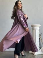 تقدم لكِ عباية خزامى من الحرير بلون موف، تجربة فريدة تمزج بين الأناقة والراحة. صُنعت هذه العباية من أفخر أنواع الحرير، مما يجعلها خفيفة على الجسم وتضمن لكِ إحساسًا بالفخامة في كل مناسبة. تتمتع العباية بتصميم كلوش يبرز أنوثتك ويمنحك حرية الحركة، بالإضافة إلى التطريز الرقيق على الأكمام الذي يضيف لمسة من الفخامة والابتكار.
